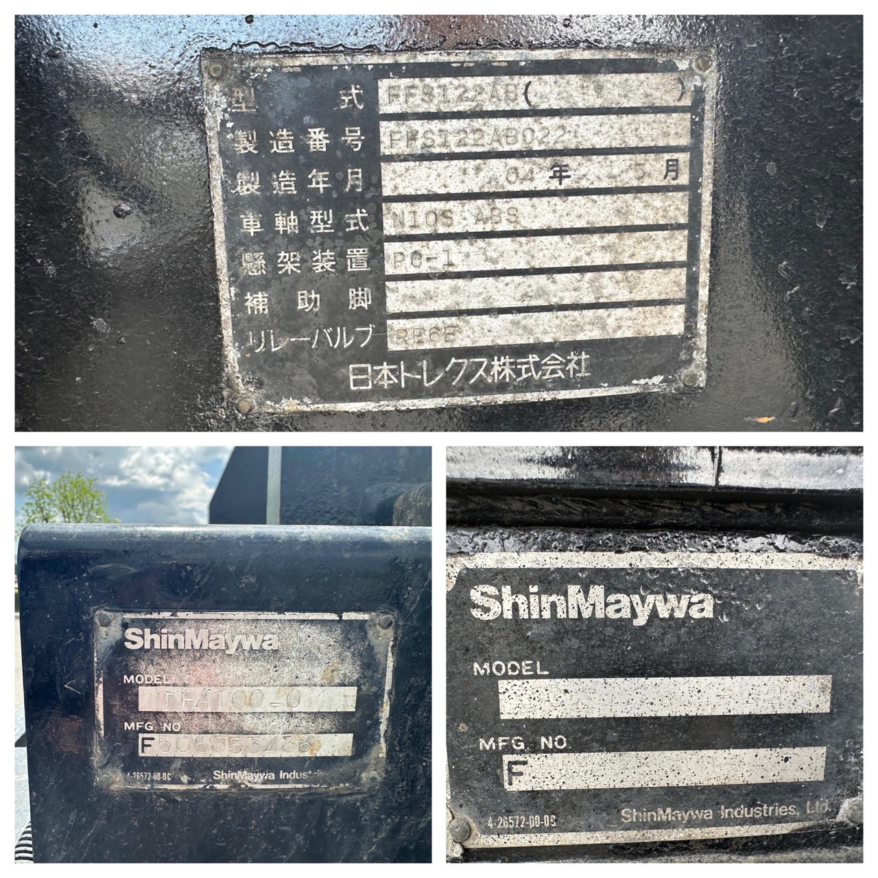 | コメント | 【商品説明】 【ヘッド側】 メーカー:いすゞ 車種名:GIGA 形状:脱着装置付コンテナ専用車 初年度:平成21年3月 車検:満タン車検 型式:PDG-CYZ52Q8 最大積載量:10300㎏ 車両総重量:21970㎏ 燃料:軽油 シフト:HL8 車両サイズ 長さ:911㎝ 幅:249㎝ 高さ:358㎝ 走行:1,151,475㎞←車両移動により距離は多少伸びますご理解下さい。 修復:無し 【台車側】 メーカー:トレクス 形状:コンテナフルトレーラー 初年度:平成16年7月 車検:満タン車検 型式:FFS122AB 最大積載量:10600㎏ 車両総重量:15700㎏ 車両サイズ 長さ:843㎝ 幅:249㎝ 高さ:177㎝ セールスポイント 平成21年式 いすゞGIGA セミトレーラー式脱着装置付コンテナ専用車のご紹介です。 〇6WG1エンジン400馬力 〇新明和工業 〇ETC 〇バックカメラ 〇ヘッド側総輪アルミホイール 〇台車側総輪メッキホイール 〇ツインホイスト 〇ハイルーフ 〇アドブルー無し 〇ダブルタンク600L 〇プロテクターステンレス |